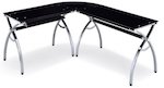 ![]() | Techni Mobili Black Glass Corner Desk | Forme L | ![]() ![]() |